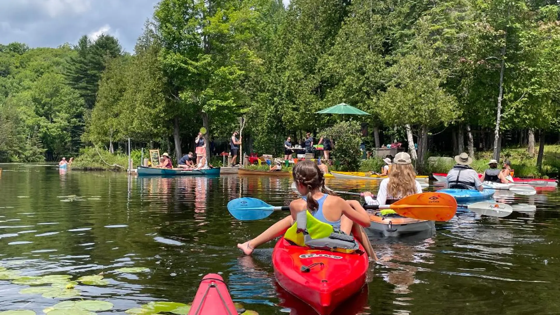 - Players paddle around Adirondack Lake, stopping at themed docks and building a five-card hand.