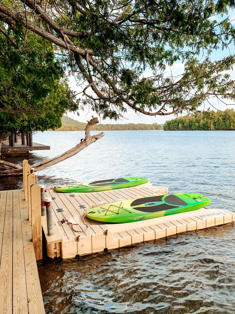 The main lodge (est. 1898) houses 8 guest rooms, two common sitting rooms, an original fireplace, the main dining area and an expansive wraparound porch. Throughout the 8-acre property there are 4 “motel” units and 10 cabins, ranging in size from 1 – 3 bedrooms. Hemlock Hall is situated on 500 feet of waterfront with a large beach and swimming area, a fishing dock and a collection of boats (kayaks, canoes, paddle boats, SUPs, row boats) for guests’ enjoyment.