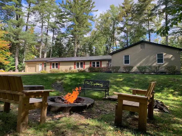 “Towering Pines accommodates large family gatherings to enjoy the Adirondacks while providing amble space for everyone. There is plenty of room inside and out! Sit in the screened porch & enjoy the quite wooded lot, sit at the fire pit and enjoy the star filled sky or spend time in the new game room! This is a 4 season retreat with plenty of amenities in and around the camp for the entire family to enjoy! Walk in, drop your bags and begin to enjoy all the Adirondacks has to offer.”