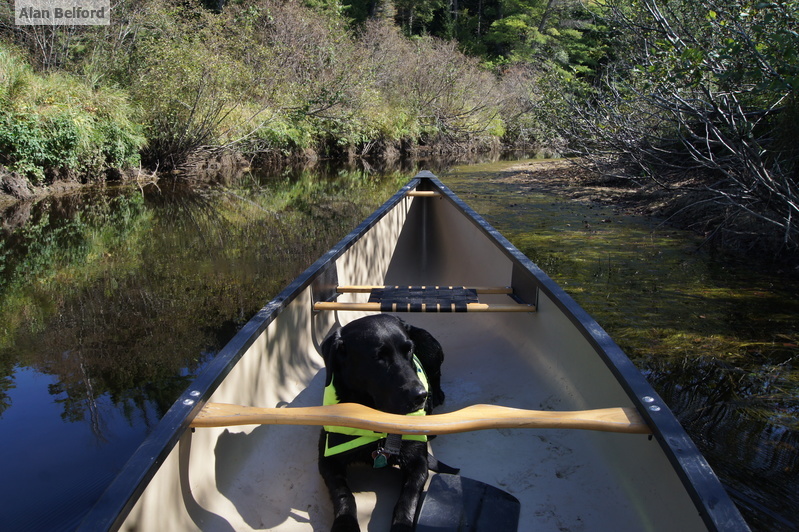 The wild nature of the river also creates work for paddlers, and anyone going there should be well aware that means beaver dams. And beaver dams mean wet feet. We hit our first dam soon after departing. And then our second. And then our third. At each stop I let Wren out of the boat and hoisted the boat past the dam before getting us both back in the canoe. One of the dams was old and poorly maintained, but it must have been a good piece of construction at one point as it had collected an impressive ridge of sand in its stalled waters. There was plenty of beaver sign along the sandbar, but nothing else of note as I searched it for animal tracks.